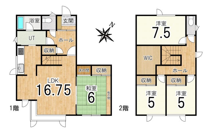 ◆1階1部屋2階3部屋の4LDK住宅◆約16.6帖のLDK◆各階トイレ設置◆各居室収納付き